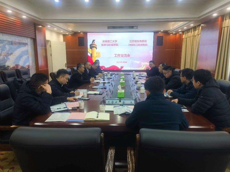 在江苏煤炭地质局(中煤长江地质集团),学院一行受到了地质局党委委员、副局长史建勇和集团相关部门负责人、分公司领导的热情接待。史建勇介绍了江苏煤炭地质局发展情况,就各个业务板块人才需求情况以及具体要求作了重点介绍,对能够掌握先进勘探技术并可以熟练驾驭先进地质设备人才表示了迫切需求。贾伟结合学校、学院历史沿革和近年来发展取得的突出成绩,重点介绍了学院专业设置以及学生实践能力培养体系等内容,听取了单位对学院本科生课程设置的意见建议。双方围绕行业发展趋势、人才需求特点展开深入交流,并就共建实习基地、开展科技合作以及人才培养达成初步共识。