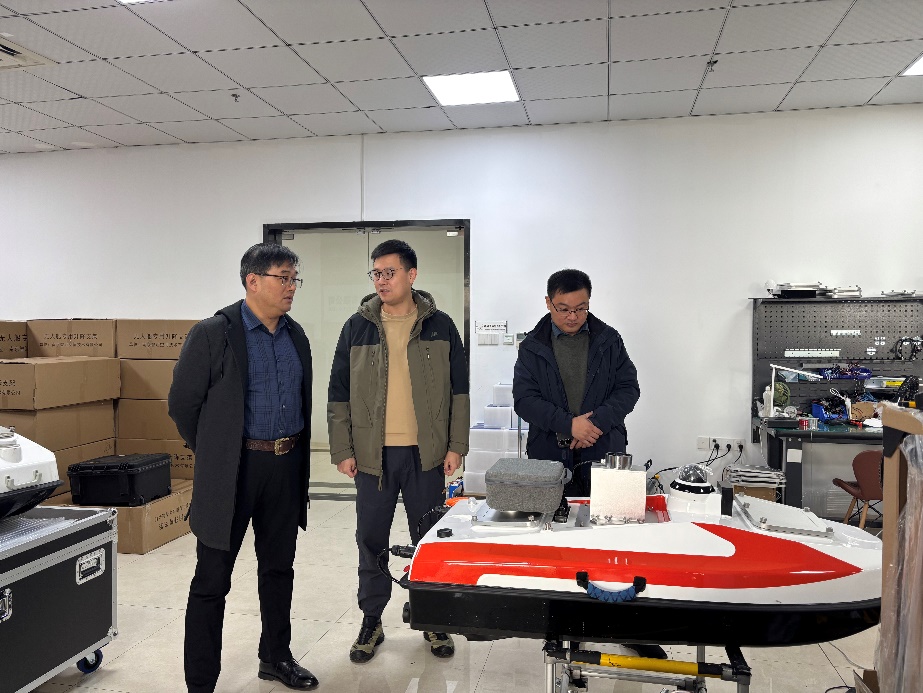 在南京智汇空间技术有限责任公司,学院一行听取了环境工程2005级校友、公司董事长周信军的专题介绍。作为一家专业从事无人船研发、生产、销售和服务的国家高新技术企业,南京智汇空间技术有限责任公司在水下地形测绘、水文测流、水质采样、环境检测、海洋监测等专业水上无人船设计生产领域取得了骄人成绩。谈到对人才需求时,周信军表示,随着空间技术在测量勘察、水文及环境监测等多领域深度融合,他们急需精通地质环境检测原理并能熟练运用空间信息技术的跨学科复合型人才。学校、学院多元化的专业布局恰好契合这一需求,对加强校企合作,提供就业岗位达成初步意向。