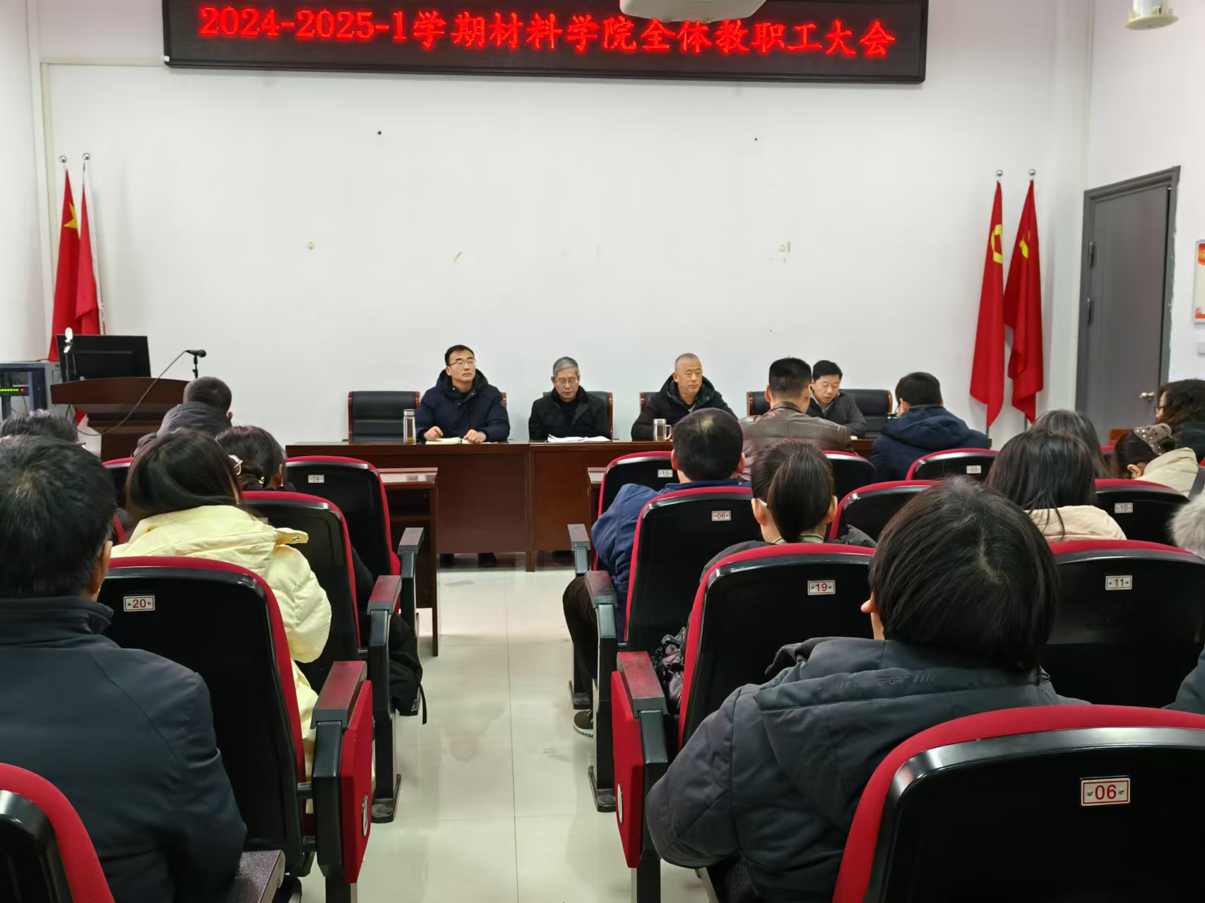 1月10日下午,材料科学与工程学院在崇义楼B118会议室召开教职工大会,全面总结2024年学院取得的工作成就,系统部署2025年学院重点工作。学院领导班子成员、全体教职工参加会议。会议由学院党委书记陈满乾主持。