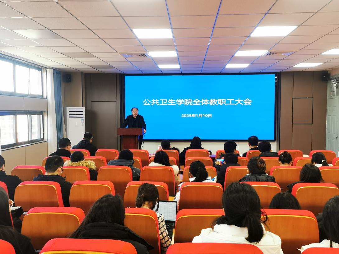 1月10日下午,公共卫生学院在格物楼A519室召开教职工大会,全院教职工参加会议,会议由院党委书记李颖主持。