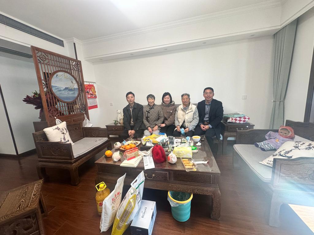 一行人带着饱含心意的慰问品和诚挚的新春祝福,分别来到退休老党员钱统钦、董成章、张兰鼎老师的家中或居住场所。每到一处,一行人都与老党员们热情握手,亲切地唠起家常,详细询问他们的身体状况和生活情况,从饮食起居到医疗保健,都一一关心到位。交谈中,老党员们满怀深情地回忆起在学院工作时的峥嵘岁月,分享着那些为教育事业拼搏奋斗的难忘故事。一行人还向老党员们通报了学校学院近年来取得的成绩,向老党员们曾经努力工作为学校学院建设发展打下的坚实基础和长期以来对学校学院建设发展的关心支持表示感谢,希望他们在保重身体的同时,能够一如既往地关心和支持学校学院工作。走访慰问同时,学院党委和退休党支部还“送学上门”,将党的创新理论书籍送到退休老党员手中。