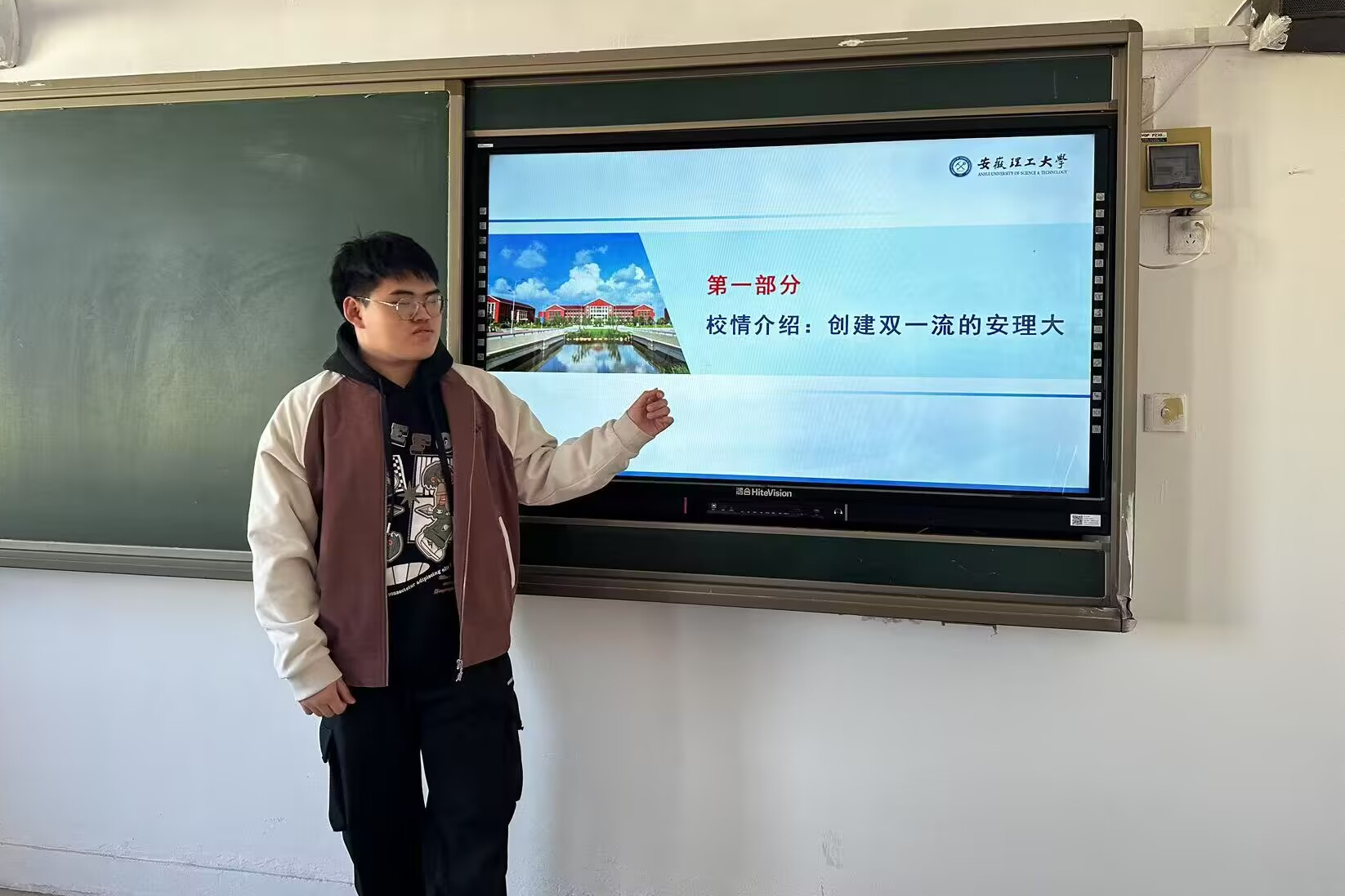 回访过程及感悟:再踏入高中校园,羊肠小道在脚下蔓延,往昔的记忆也在我脑海重演。心怀对母校的感恩与对大学的热爱,我将要向高三的学弟学妹们宣传我的大学分享我的大学生活。走进教室,不止好奇与期待,他们眼中更多的是对上大学的渴望。精心制作的宣传PPT、规范化的讲解,我向学弟学妹们逐一介绍了安徽理工大学悠久的办学历史、先进的教学设施、美丽的校园景色,这些无不吸引着他们好奇的目光。随后,与学弟学妹们分享自身的高考备考经验,讲述大学丰富多彩的学术活动、社团生活,让他们感受大学生活的魅力。在互动环节,面对诸如“如何选择适合的专业”“大学奖学金政策”等问题,耐心解答疑问。看到学弟学妹们眼中燃起的星星之火,我知道这次宣讲之旅已然有了意义,我为安理代言,发出了“夜色难免微凉,前行必有曙光”的启示。