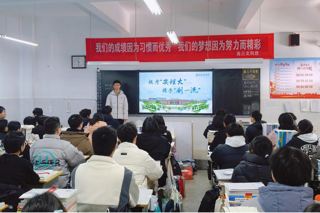 医学院学子重返熟悉的高中校园,与学弟学妹们相聚一堂,不仅搭建起安徽理工大学与高中母校、学弟学妹间沟通的桥梁,更让励志的火种在青春的土壤中扎根。相信未来,会有更多同学在这份激励下,勇敢逐梦,书写属于自己的精彩篇章。
