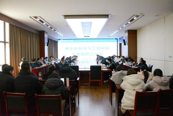 2月21日,碳中和科学与工程学院于产教融合楼一楼会议室召开全体教职工大会。会议由学院原党委书记徐良骥主持,学院领导班子及全体教职工共同参与,共商学院发展新篇章。