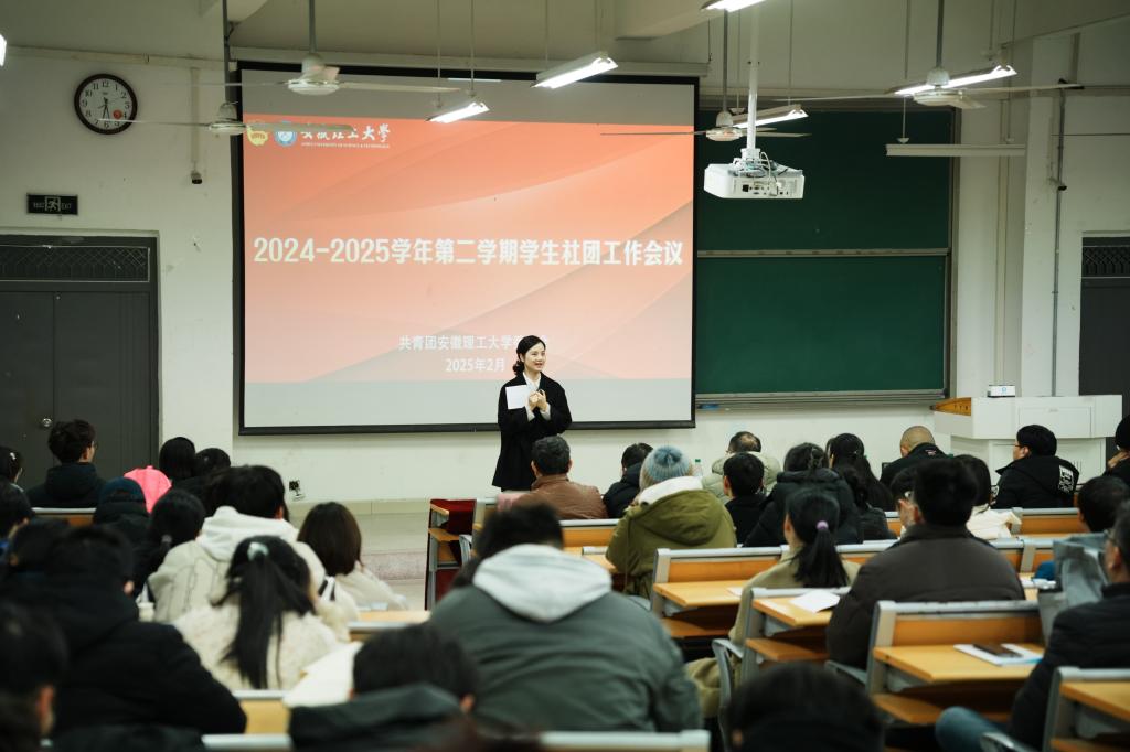 为献礼80周年校庆,明确新学期工作目标,进一步推动学生社团高质量发展,2月25日晚,2024-2025学年第二学期学生社团工作会议在天工楼101教室顺利召开。校团委相关负责人、社团指导教师和各社团负责人齐聚一堂,共谋新学期社团工作发展蓝图。