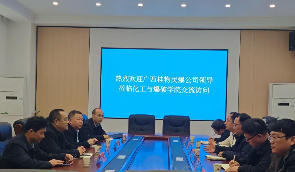 2月28日,广西桂物民爆物品有限公司总经理吴香善一行来化工与爆破学院访问交流。化工与爆破学院院长汪泉、党委副书记曹秀军、副院长胡劲松以及爆炸科学与工程系部分专业教师在学院东103会议室开展座谈交流,汪泉主持座谈会。