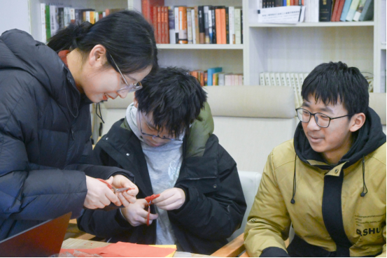 活动开场,汪利萍老师组织了“滚雪球”破冰游戏。同学们在轻松的自我介绍与互动里,迅速打破隔阂,现场氛围瞬间热烈起来。紧接着,汪利萍老师深入浅出地讲解了剪纸艺术的悠久历史、深厚文化内涵,并悉心演示了基本的剪纸技巧,让大家快速掌握了剪纸的门道。