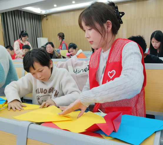 志愿者们耐心地教孩子们折叠纸飞机,孩子们学得十分认真,小手灵活地摆弄着纸张,不一会儿,一架架纸飞机便在他们手中诞生。每架纸飞机上都承载着孩子们的梦想与期待。当看着纸飞机在天空中翱翔时,孩子们的脸上洋溢着灿烂的笑容。这一过程不仅锻炼了孩子们的动手能力和创造力,更让他们在相互协作中感受到了团结的力量。志愿者汪良奇同学说:“看着他们奔跑的身影,我深刻体会到,每个孩子都值得拥有追逐梦想的勇气和力量。”