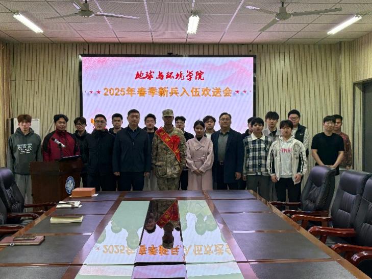 迷彩绘青春,钢枪卫山河。3月12日下午,地球与环境学院在静远楼B414会议室举行新兵入伍欢送会,学院党委书记陈楠、党委副书记贾伟、相关辅导员及13名意愿入伍学生参加本次欢送会。