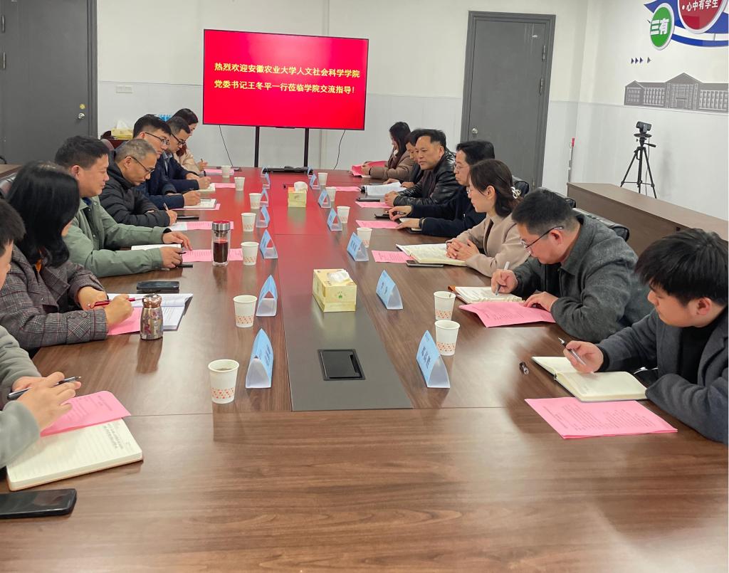 3月13日下午,安徽农业大学人文社会科学学院党委书记王冬平一行7人到外国语学院开展新文科认证工作交流学习。外国语学院、经济与管理学院等相关工作负责人参加会议。