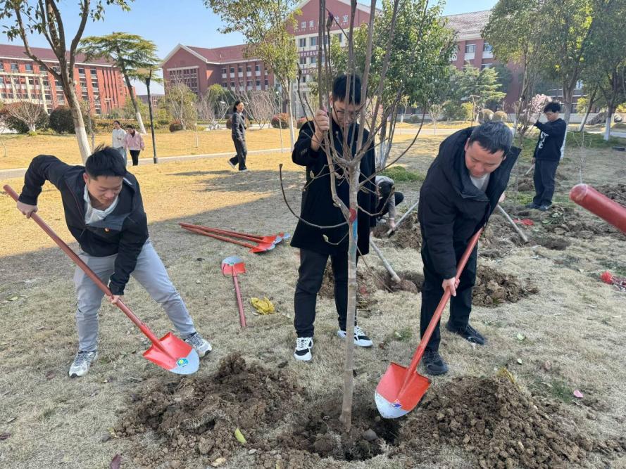 挥锹铲土、扶苗培根、提桶浇水……活动现场,毕业生党员们以班级为单位分工协作精心栽种。学生们种下玉兰,寓意高洁报国,这也是母校对毕业党员的殷切期许。地质学生第二党支部党员李轩窈轻抚树苗说道:“两年前在党旗下宣誓,今天以植树践行誓言。这棵树将带着我们的初心扎根母校,无论未来走多远,这里永远是精神原乡。”