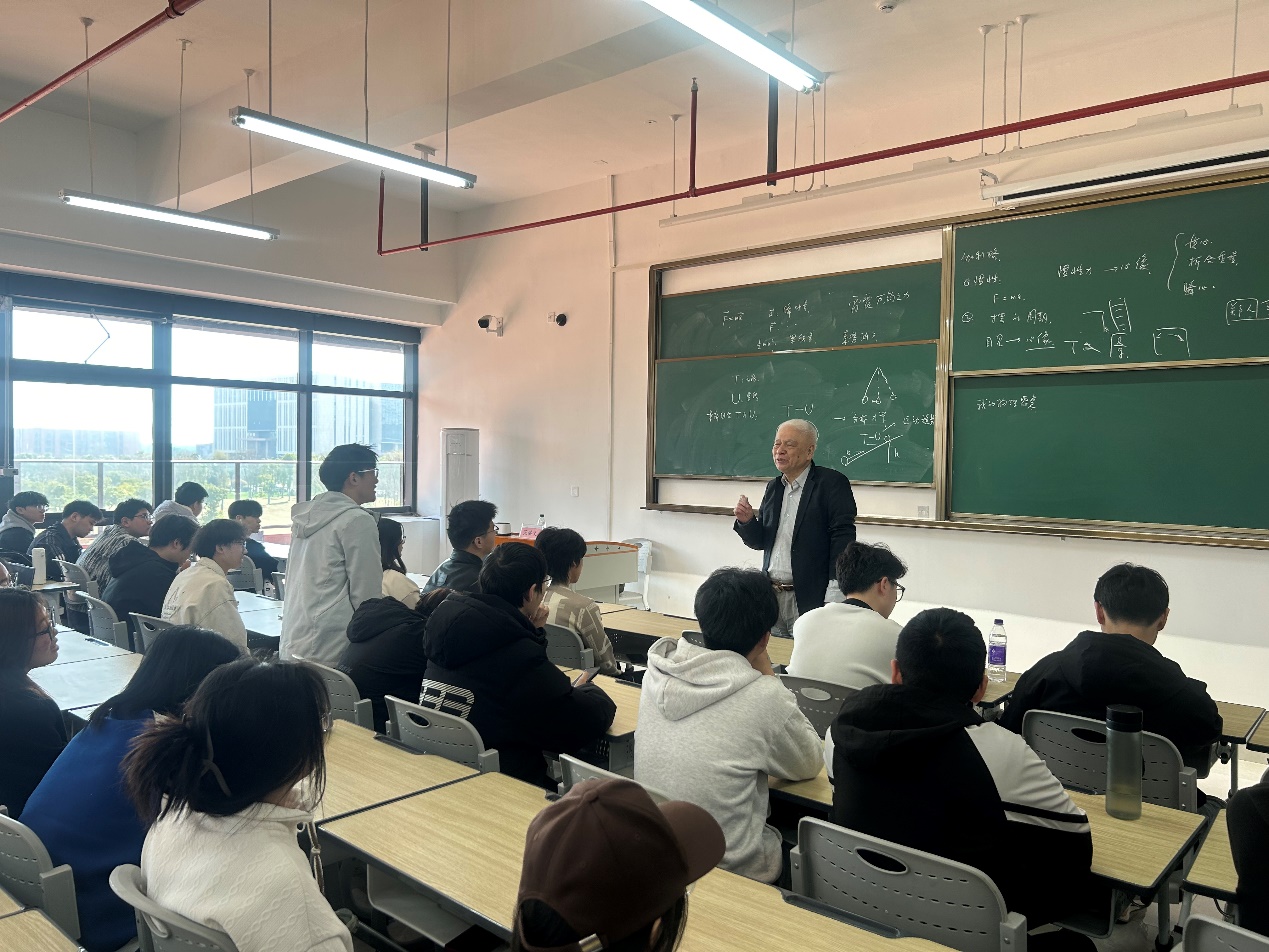 范洪义教授以“物理感觉”为切入点,从中国古典文学中挖掘科学智慧。他以“庄周梦蝶”为例,并结合《道德经》“道之为物,惟恍惟惚,惚兮恍兮,其中有象”,从哲学的角度诠释了物理感觉的重要作用,告诉青年学子学物理重要的不仅仅是学会公式的含义,更重要的是去理解物理学背后的物理图像。他讲解了经典物理学的几个经典图像:如伽利略的惯性图像、惠更斯的波动图像等,进一步强调了物理图像的价值,令在场学子惊叹不已。范洪义教授还结合自己的学术研究,介绍自己的物理感觉,他从经典力学讲起,逐步过渡至分析力学的拉格朗日量和哈密顿量,不仅介绍了两种物理量的联系,更重要的是教会青年学子像物理学家那样思考“假如我是当时的物理学家,我为什么会引入拉格朗日量和哈密顿量”,他从光子的产生与湮灭的角度出发,将晦涩的量子力学讲得通俗易懂,构建起简洁的量子力学物理图像。