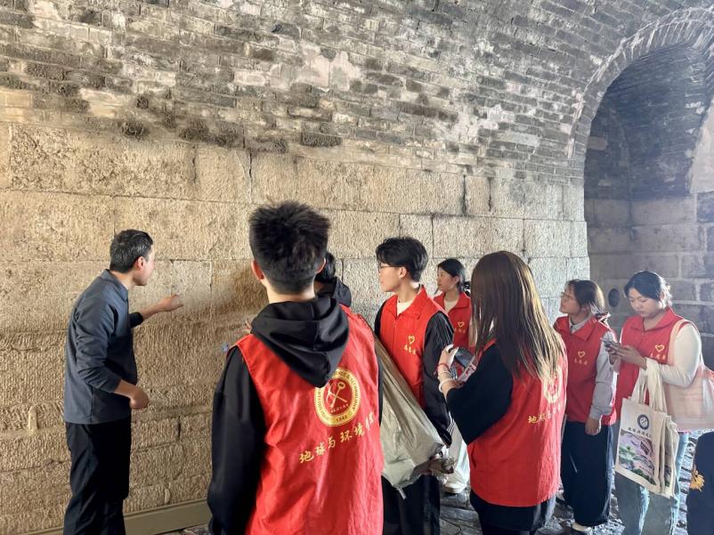 志愿者走进寿县古城墙,在了解古城防洪的历史中,水文专业学生还结合专业特长向游客介绍水利设施防洪的原理,得到来往游客的称赞。