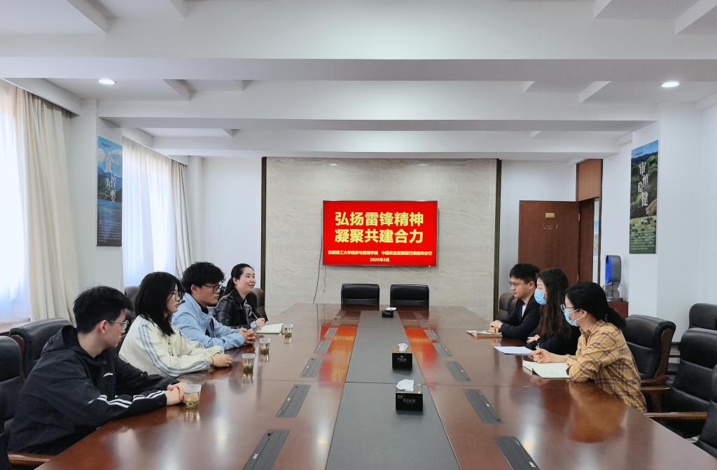 3月26日,经济与管理学院团委及学生代表赴中国农业发展银行淮南市分行,就“弘扬雷锋精神,凝聚共建合力”主题开展座谈会,中国农业发展银行淮南市分行团委书记苏晓燕等出席座谈,双方聚焦社会服务与人才培养,旨在通过合作共建,将雷锋精神融入实际行动,为教育事业与社会发展注入新活力。