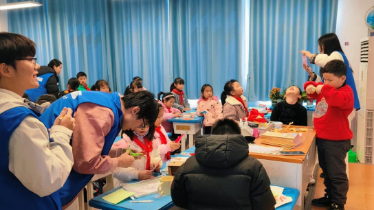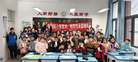 “π动力”志愿服务队联合班级团支部前往安徽理工大学附属幼儿园和附属小学,创新打造“行走的数学课堂”。在数学科普活动中,通过“大数据小课堂”“数字迷宫”“图形魔法屋”等沉浸式教学,让小学生在玩中学、学中乐;非遗项目体验,通过剪纸、拓印、绘画等方式,让小朋友们在创作中感受传统文化魅力;“心灵树洞”信箱成为孩子们的情感“安全岛”,双向夸赞盲盒活动帮助小学生们发现彼此的优势,用生动语言让小学生更加自信阳光。志愿者们将知识传授与价值引领有机结合,让雷锋精神在青少年心中生根发芽。