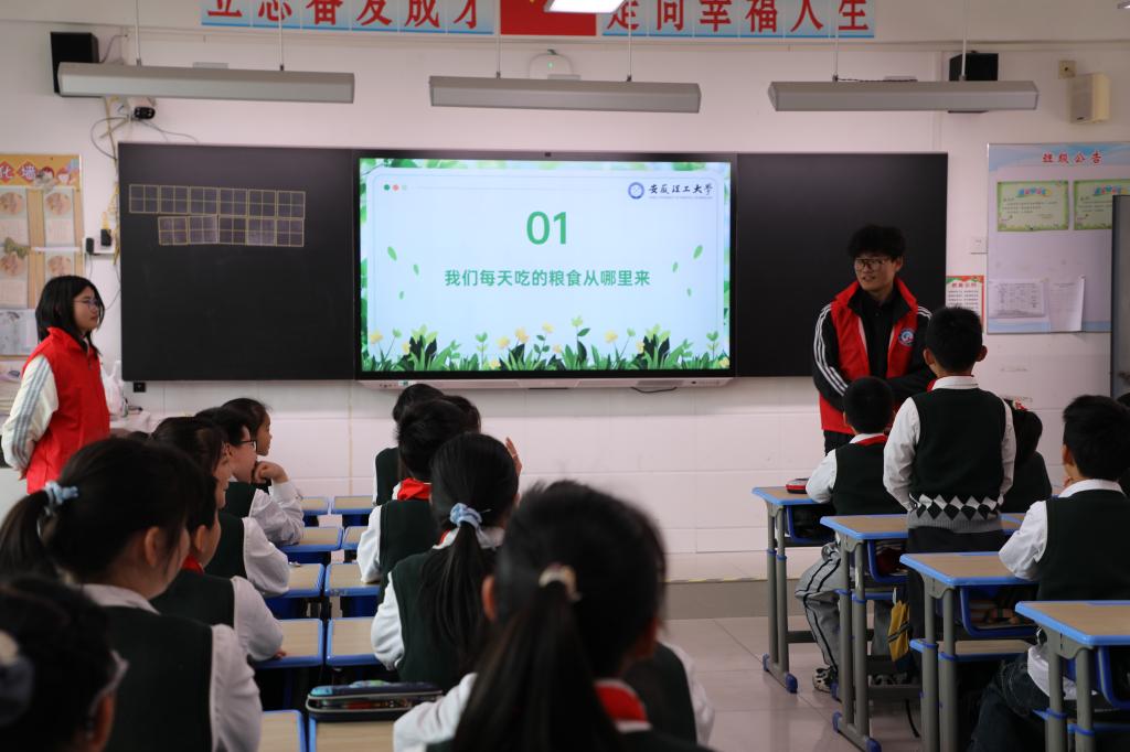 活动伊始,大学生化身“科普导师”,通过生动的图文和视频,向小学生科普农作物的生长周期、种植要点、采收过程等知识,带领孩子们探索农业世界的奇妙。随后,中国农业发展银行淮南市分行的工作人员围绕粮食安全主题,结合数据与实例,深入浅出地讲解粮食安全的重要性以及珍惜粮食的意义。