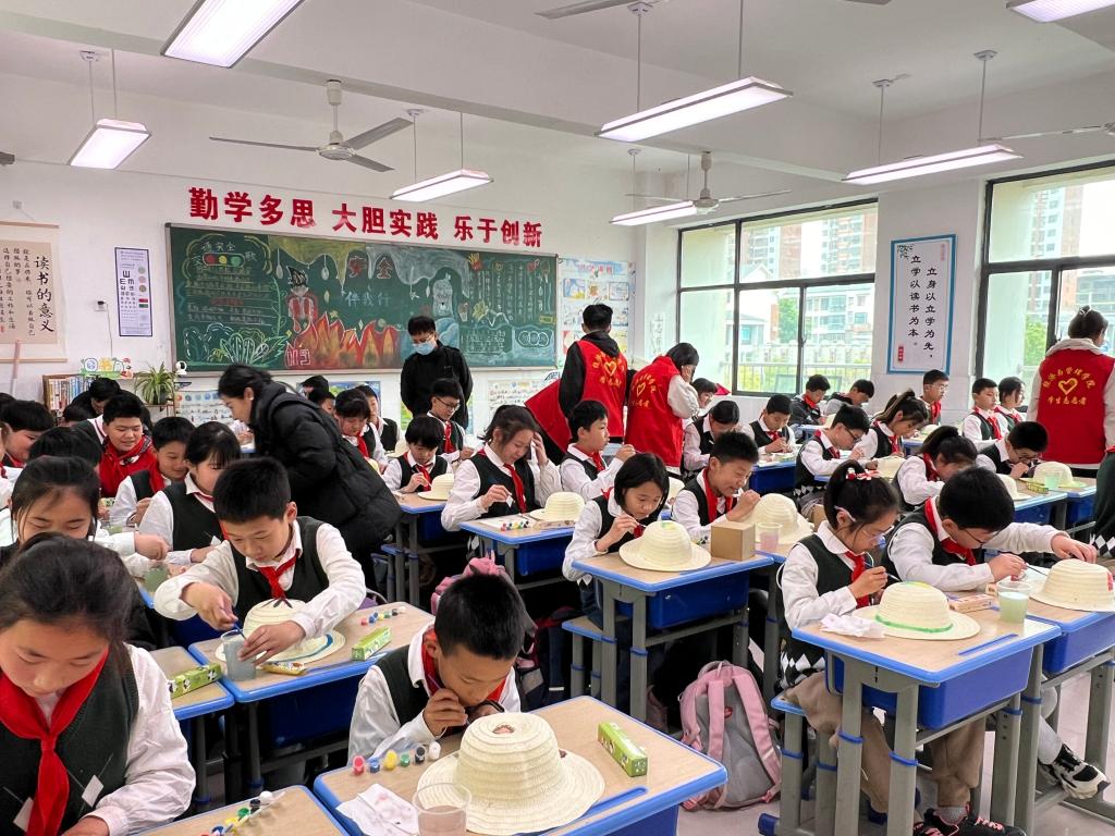 创意实践环节,在志愿者和银行工作人员的指导下,孩子们充分发挥想象力,化身“小画家”,手执画笔在草帽上绘制水稻、玉米等农作物图案。鲜艳的色彩、童趣的构图,不仅展现了孩子们的创造力,更在创作中加深了对农作物的认知。