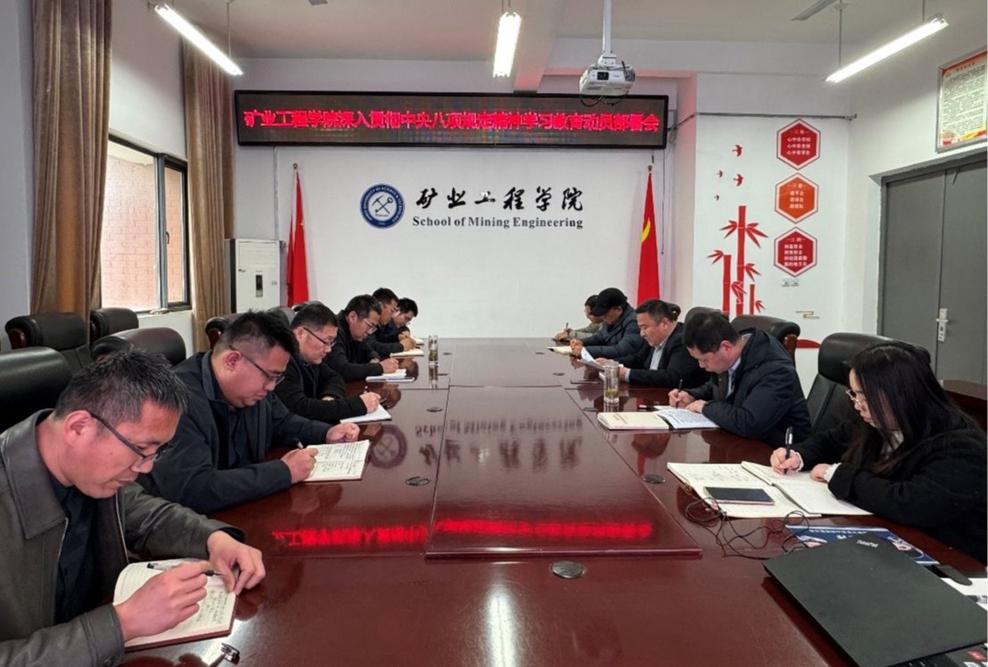 3月28日下午,矿业工程学院党委在宁远楼A406会议室召开深入贯彻中央八项规定精神学习教育动员部署会,深入学习习近平总书记关于加强党的作风建设的重要论述,传达《中共中央办公厅关于在全党开展深入贯彻中央八项规定精神学习教育的通知》要求和校党委党的建设工作领导小组(扩大)会议精神,研究部署学院贯彻落实工作。会议由学院党委书记常聚才主持。学院领导班子成员、各党支部书记、科级干部等参加会议。