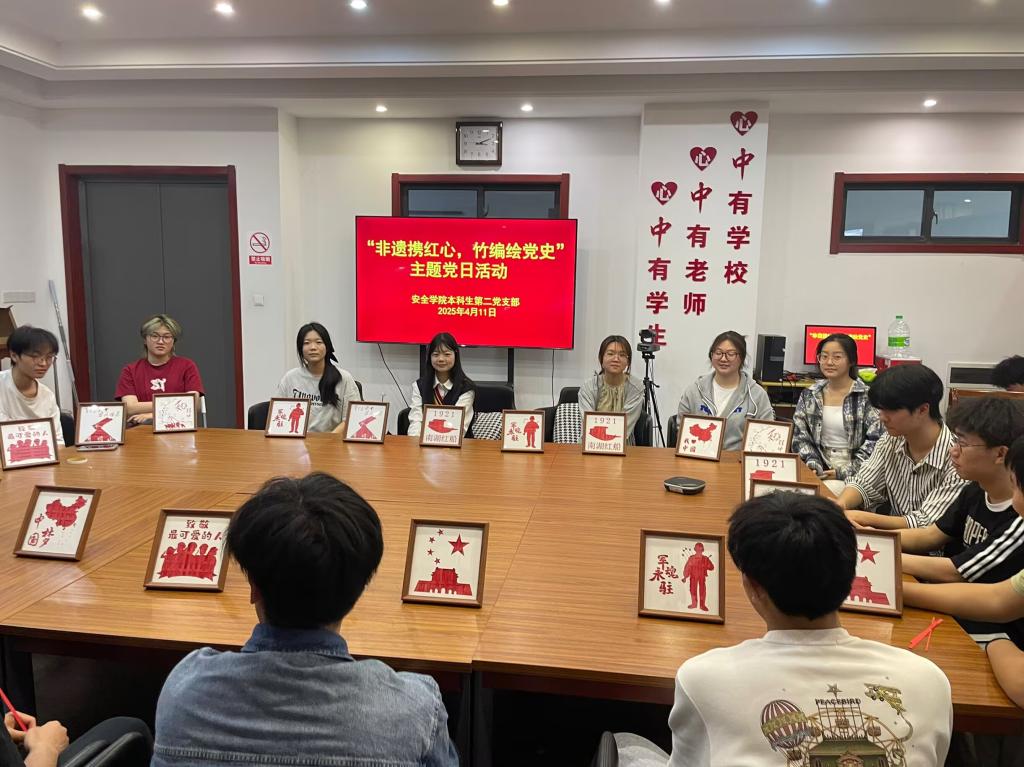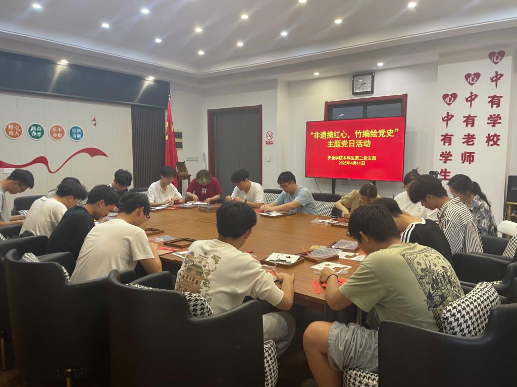 为增强学生党员们党性修养,自觉地践行初心使命,4月11日下午,安全科学与工程学院组织学生支部党员在宁远楼“一站式”社区举办“非遗携红心,竹编绘党史”主题党日活动。