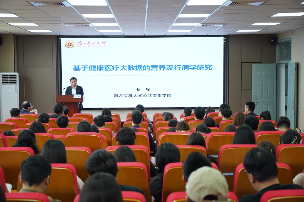 毛琛以《基于健康医疗大数据的营养流行病学研究》为题作报告。他分享了其团队在健康医疗大数据与营养流行病学交叉领域的最新研究成果。报告详细介绍了超算中心建设背景、健康医疗大数据的应用及多项突破性科研成果,为慢性病预防和精准营养干预提供了重要科学依据。毛琛在报告中指出,随着健康医疗大数据时代的到来,超算中心的建设成为支撑大规模数据分析和多组学研究的关键基础设施。他强调,未来团队将继续依托健康医疗大数据平台,深化精准营养队列研究,探索营养素补充与基因型的交互作用。