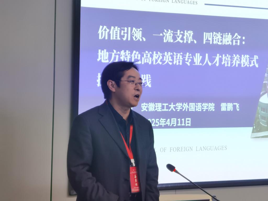 雷鹏飞在院长平行论坛中作了题为“价值引领、一流支撑、四链融合:地方特色高校英语专业人才培养模式探索与实践”的专题发言,汇报了学校在培养复合型应用型英语专业人才上所做的探索和实践,发言引起了参会院长和专家教师的浓厚兴趣。
