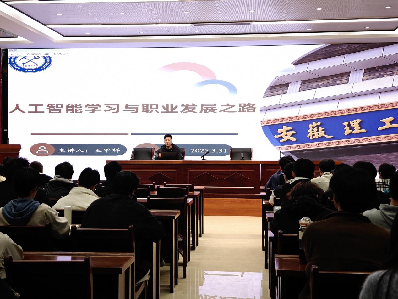 王甲祥以《人工智能学习与职业发展之路》为主题,结合自身学习与从业经验,希望学生立足国家战略需求,科学制定目标,注重理论与实践相结合,通过专业见习、企业实习等路径提升核心竞争力。