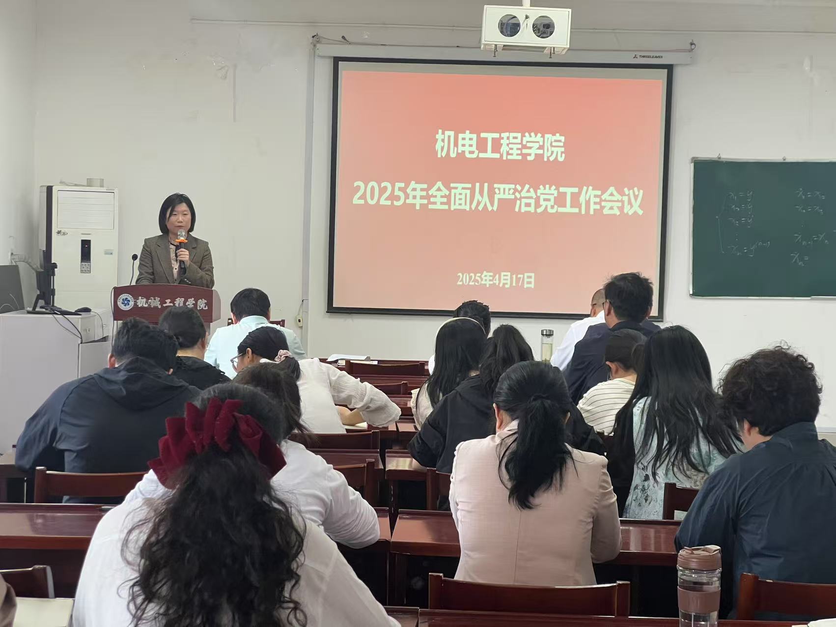 4月17日上午,机电工程学院在励学楼B403报告厅召开2025年全面从严治党工作会议。学院全体教工党员参加会议。