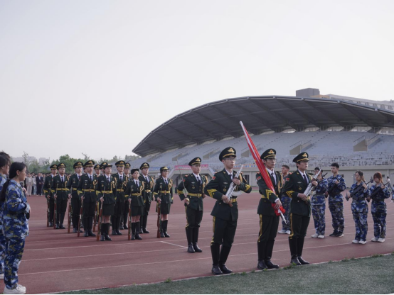 仪式最后,师生合唱校歌《大学无疆》。整齐嘹亮的歌声在上空回响,爱校荣校的情怀在心底扎根,强军报国的梦想在脚下启航。