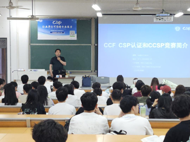 5月6日晚,中国计算机学会CCF CSP(计算机软件能力)认证和CCSP(大学生计算机系统与程序设计)竞赛宣讲会在天工201教室举行,计算机科学与工程学院师生200余人参加。