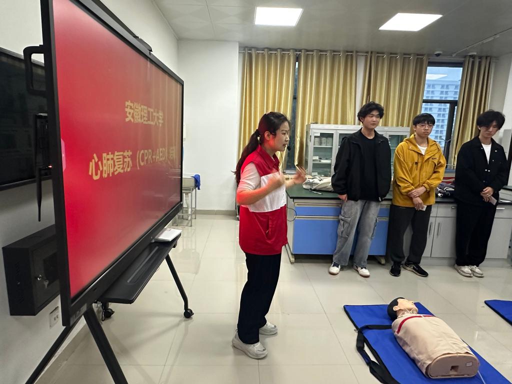 5月7日至8日,空间信息与测绘工程学院2025年入党积极分子培训班学员在校临床技能实践中心参加了CPR+AED持证培训。淮南市红十字会委托安徽理工大学在校红十字应急救护培训师资刘静等负责本次持证培训活动。
