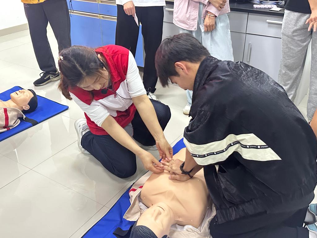此次培训分为线上和线下两部分进行。培训前期,培训导师刘静提前通过培训系统建立班级,指导学员注册、学习和参加理论考核,组织校其他红十字应急救护培训师资共同承担线下实操教学任务。