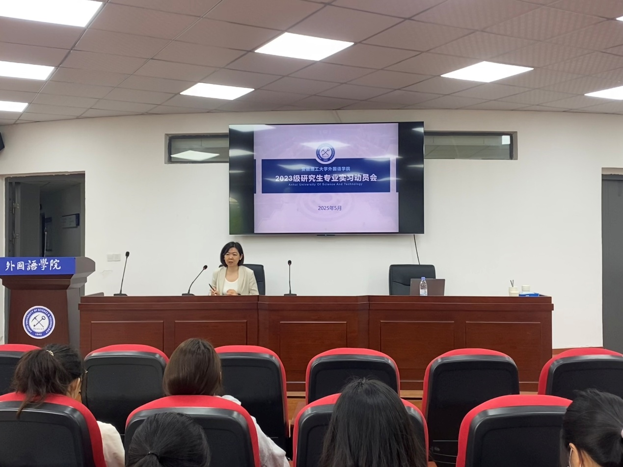 为提高2023级翻译硕士专业实习质量,提升学生就业能力,5月9日上午,外国语学院在学院会议室召开2023级翻译硕士实习动员大会。学院分管研究生工作的负责人、实习带队老师及2023级全体翻译硕士研究生参会。