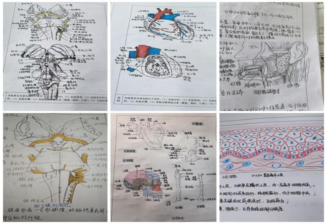 学院青年教师指导学生制作显微标本并参与显微摄影比赛,有效提升了专业实操技能与创新能力。学院举办“生命奥秘”专业绘图比赛,学生们精心绘制了心脏、大脑、骨骼等人体结构专业图像,将理论学习与实践操作紧密结合,有效提升了专业素养与实践能力。
