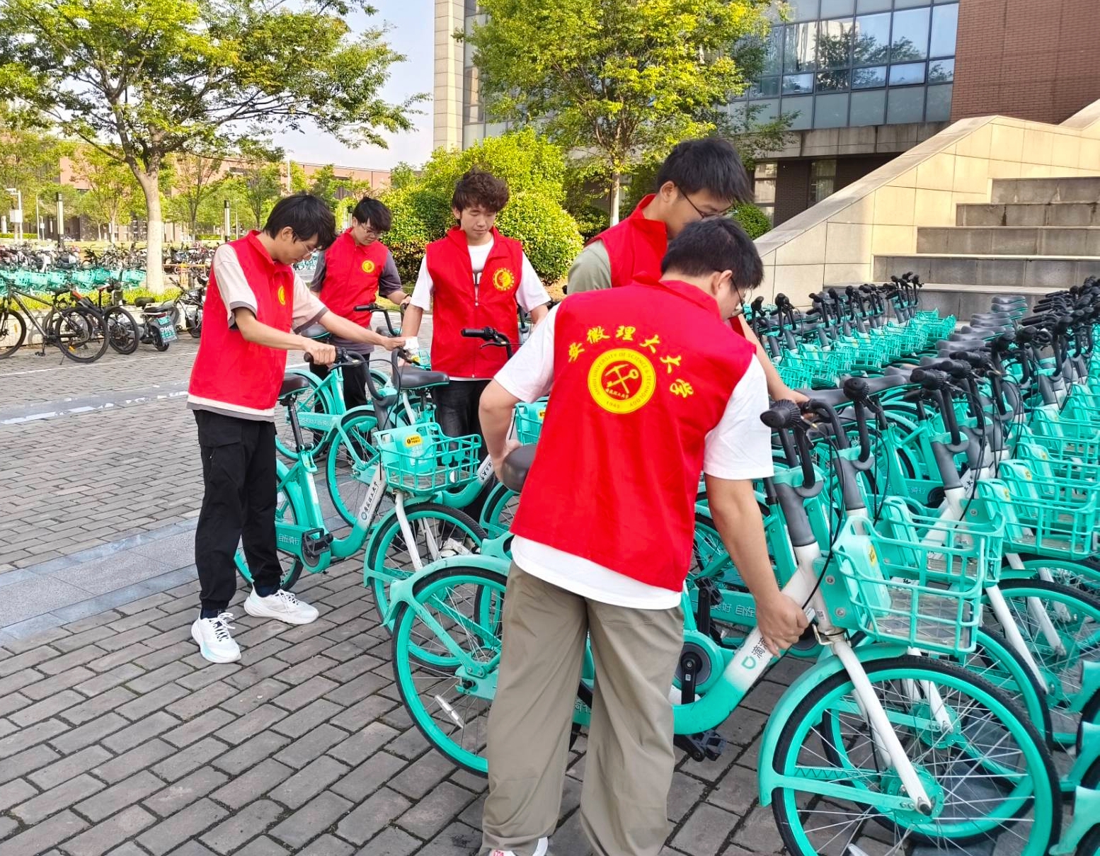5月9日至10日,“聚力凝光”志愿服务队对学生公寓楼、教学楼等区域内的散乱车辆进行了集中整理,单车摆放整齐率显著提升,切实增强了学生劳动意识与责任感。