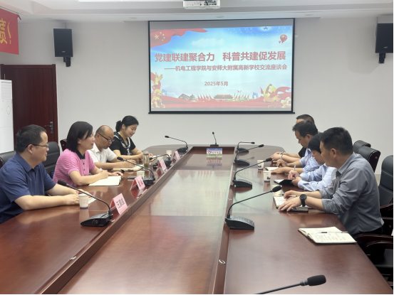 为进一步深化党建引领,践行服务社会功能,夯实“双带头人”教师党支部书记“强国行”专项行动,5月15日下午,机电工程学院党委、机械设计系党支部赴安徽师范大学附属淮南高新学校党支部开展“党建联建聚合力 科普共建促发展”党建联建活动。