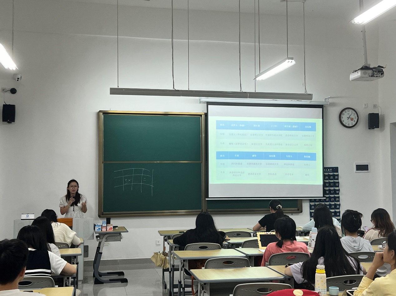 5月16日,外国语学院组织开展“研途筑梦扬帆起航”考研经验分享会,考研成功的学长学姐现场分享备考经验,各年级学生分场次参加分享。