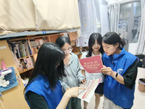 志愿者走进宿舍宣传民法典(摄影:卞余琴、尚肖肖、褚海涛)