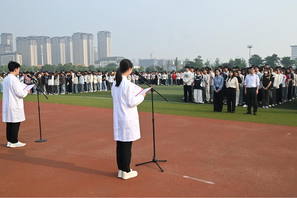 升旗仪式结束后,学生代表深情朗诵了《医道晨晨,守护生命之光》,以诗言志,声声入耳。在宣誓环节,全体医学生们跟随领诵员宣誓医学生誓言,没有华丽的辞藻堆砌,以最朴实真挚的语言和铿锵有力的声音表达对医学事业的热爱与承诺。