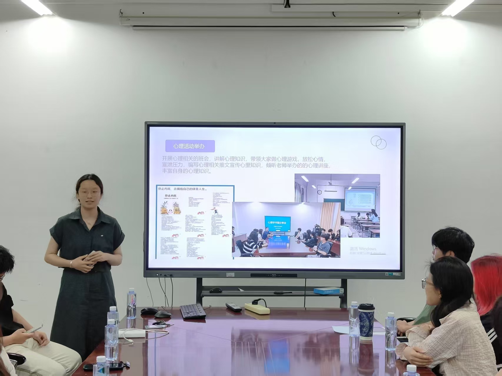 经过选拔的9名心理委员通过PPT展示了他们在关注同学心理健康状态、组织心理健康主题活动、协助解决同学心理困惑等方面的工作经验与成果,展现出高度的责任感和出色的工作能力。