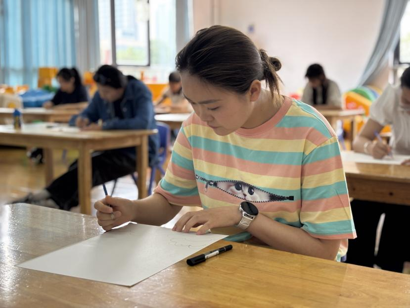 本次展示活动通过三种形式全方位检验教师的专业素养。首先教师们围绕“未来世界”主题,在十分钟内完成一幅简笔画线稿,通过灵动的线条、巧妙的构图,展现了教师对幼儿世界的理解与创造。