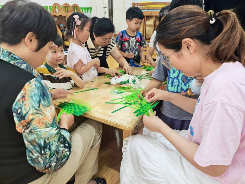 大手牵小手,快乐齐步走。丰富多彩的亲子游戏火热开场,笑声、欢呼声汇成欢乐的海洋。默契配合、亲密协作,每一刻的互动都是亲子间最甜蜜的记忆。亲子共同探索传统技艺:扎染布艺、缝制香包、编制龙舟、创意粽子…指尖流淌的是传统文化精妙。