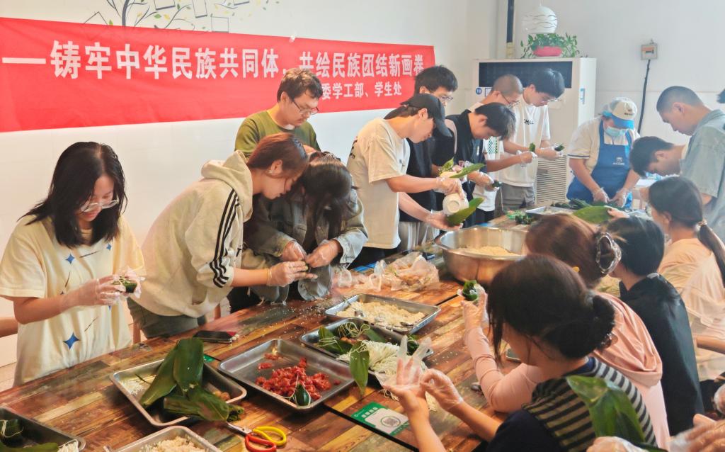 为弘扬中华优秀传统文化,铸牢中华民族共同体意识,增进各民族师生交往交流交融,5月31日,学校组织开展了“粽香传情·同心筑梦”主题活动。来自不同民族的30余名师生代表齐聚一堂,包粽子、话民俗,共同感受传统节日端午的独特民俗风情。