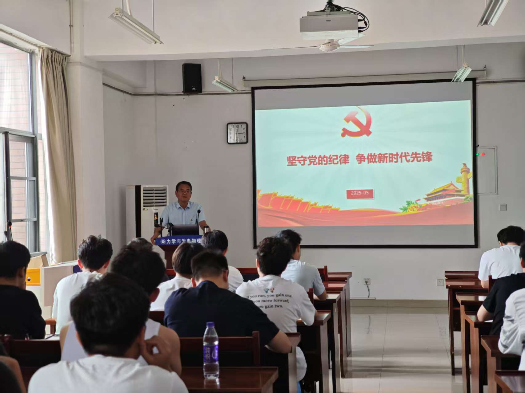 6月3日下午,力学与光电物理学院在明道楼A321报告厅开展毕业生最后一次党课暨重温入党誓词主题党日活动。学院党委书记孙东升以《坚守党的纪律,争做新时代先锋》为题,为全体毕业生党员带来了一场生动而深刻的党性教育课。