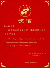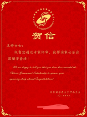 国家留学基金管理委员会公派留学贺信(王玥晗提供)