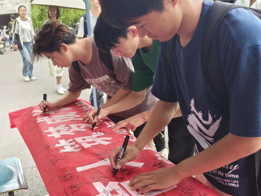 毕业生诚信宣誓签名中,受助学生举起右拳庄严宣誓,恪守诚信、践行承诺。宣誓完毕后,毕业班同学还签订助学贷款诚信承诺书。教育活动期间,受助学生还成立“诚信志愿服务队”,开展反诈宣传校园行、义务打扫献爱心等活动,践行“奉献、友爱、互助、进步”志愿者服务精神。
