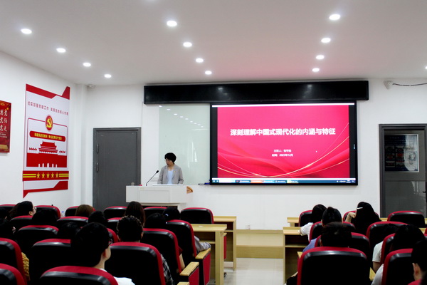 宣誓后,学院党委书记张可佳围绕“中国式现代化的内涵和特征”,为毕业生党员讲授专题党课。她结合我国现代化建设的历程,总结了从“站起来”到“强起来”的过程中,所取得的成就,通过对比西方现代化,阐释了中国式现代化内涵和特征。她指出,2025届学子的青春年华,恰值中国式现代化建设第二个百年奋斗目标实现的进程,正是现代化建设的深度参与者。她希望同学们在此干成事、干大事的历史机遇中,敢担当,肯奋斗,不负时代,创造出自己的光辉画卷。