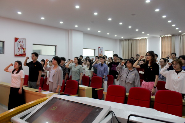 活动在庄严的齐唱国歌声中拉开序幕,在毕业班辅导员虞娟娟的带领下,与会全体党员重温了入党誓词。