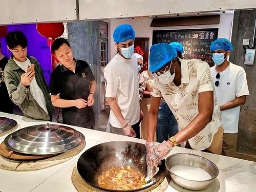 6月4日,留学生们首站走进阜阳非遗馆,亲身参与漆扇制作。随后,大家前往古东子里品尝阜阳当地菜肴,独特风味令国际学子们赞不绝口。午后,留学生们漫步颍上县尤家花园,探寻中式园林之美,激荡文化理解与交融。