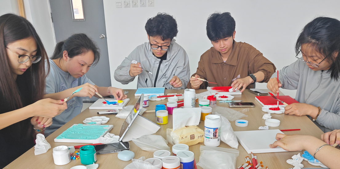 小讲师们以艺术创作为载体,通过油画棒情感表达、肌理画材质探索、耳挂DIY及手串编织等活动,引导同学们释放压力、激发创造力。参与的同学们在色彩挥洒中具象化情感,在手工制作中培养专注力与耐心,收获了身心放松与成就感。