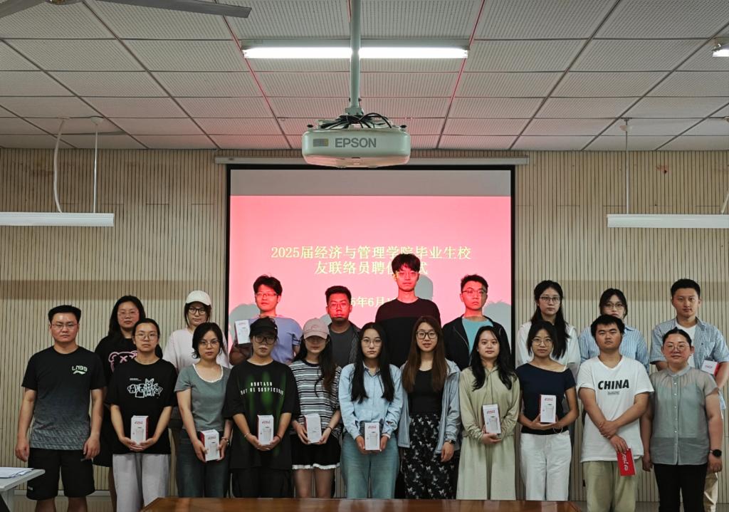 为推动校友工作深入开展,进一步增强我校校友的凝聚力,密切学校与广大校友的联系,6月10日上午,经济与管理学院在崇信楼东102会议室举办2025届毕业生校友联络员聘任仪式。学院党委副书记胡珊珊和毕业班辅导员出席本次仪式,共叙师生情谊,展望未来发展。